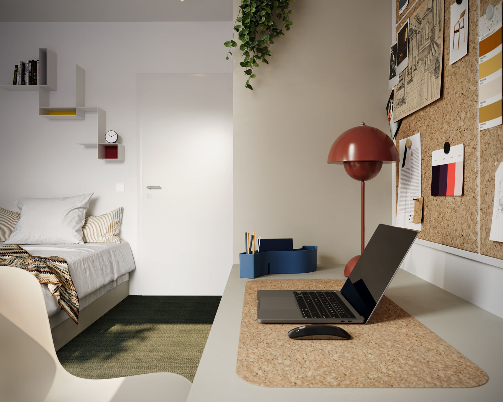 Zoals u van Dyls mag verwachten, is ook dit studentenproject tot in de puntjes afgewerkt. Elke kamer is volledig bemeubeld met op maat gemaakte meubels die niet alleen mooi, maar ook functioneel zijn. Dankzij het doordachte interieurdesign zijn de kamers een plek waar studeren, ontspannen én thuiskomen allemaal samenkomen.